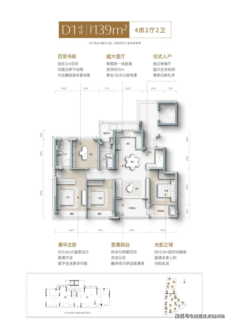 当然,如果还能再加50万预算,可以选择139㎡户型。