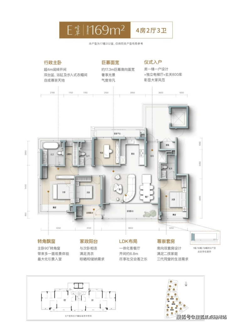 当然有钱就直接上169㎡了,半楼王位置,17.3米的南向面宽,几乎没啥可挑剔的。