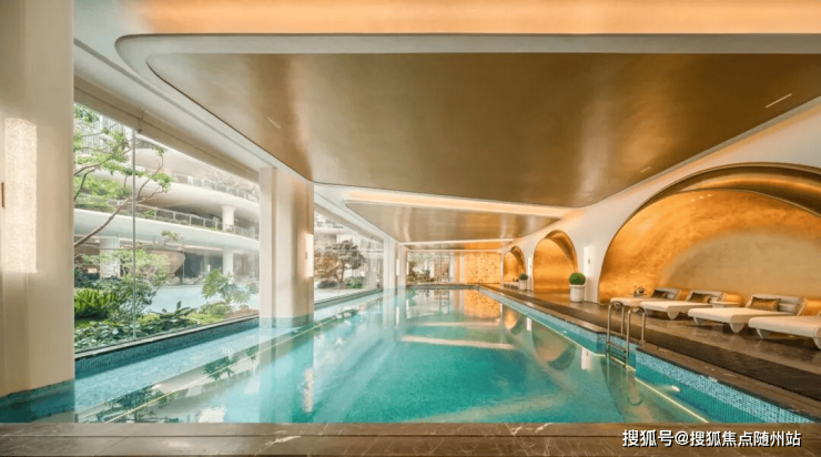 下沉庭院一侧是无际水岸倒映云天,一侧衔接约4000㎡的社交空间。配置了包括「超级健身、私享会客、全龄同享、四季游乐」四大会所体系,恒温游泳的自在畅游、水岸会客的闲适女王空间的静谧、私宴的欢聚、星际乐园的童趣等共同交融。