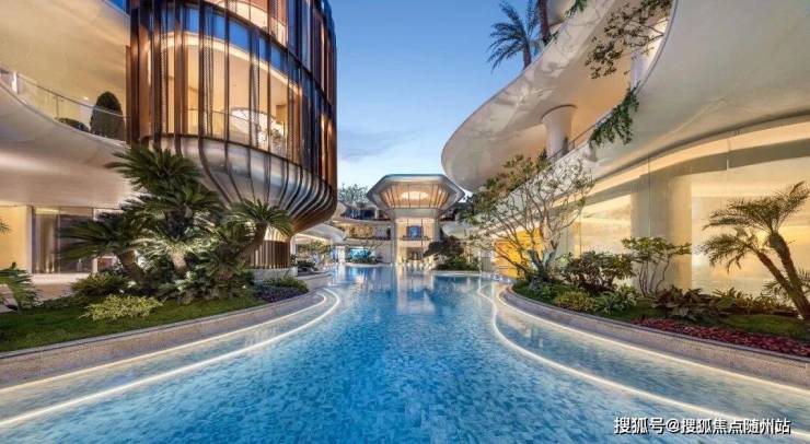 漫步水院,游弋于芭提雅的度假风情,高低错落间,风景层层展卷静水流深,飞瀑轻响,光影与树影在自然掩映间斑驳摇曳。约115㎡戏水池、超千方粼光绿洲被连廊层层串联,异域风情植物与水光相映,仿佛置身度假胜地,尽享自然与惬意的双重治愈。