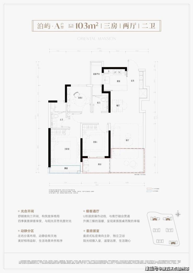 得房率的提升,户型自然就有了巨大的发挥空间。比如103㎡的三房,三开间朝南,巧妙地用S墙和创新的玻璃厨房,让空间的观感大大提升。