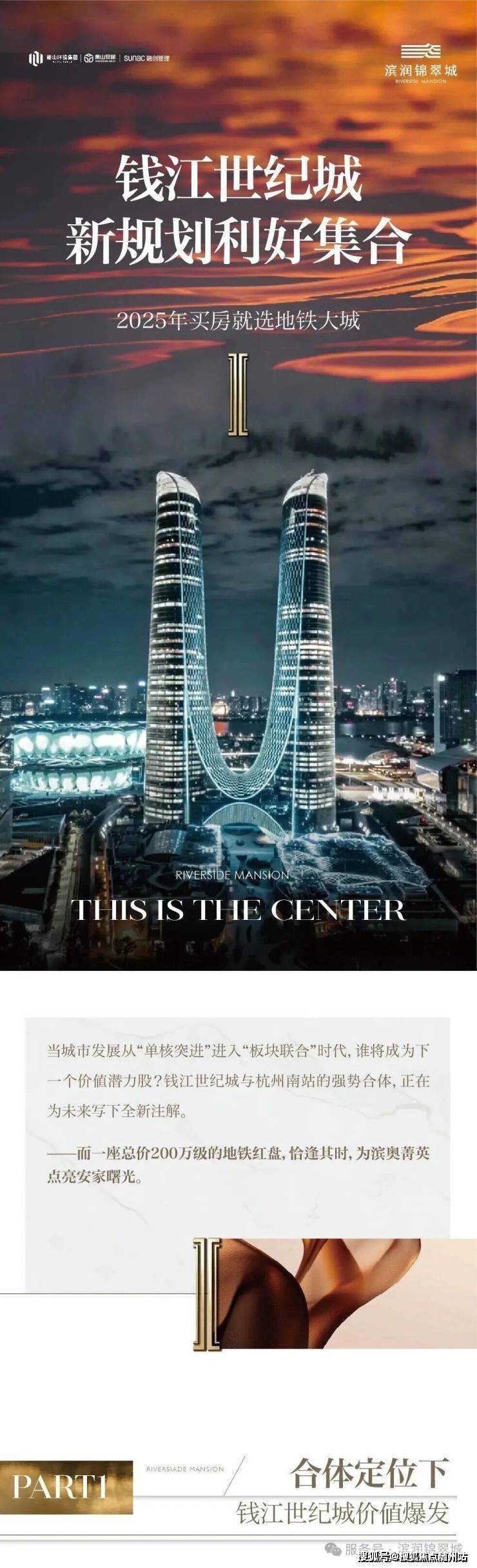 ▰▰ 杭州萧山区 滨润·锦翠城 火热销售中 ▰▰ 位于奥体南新塘板块的滨润锦翠城,以总价200万级、25万方地铁大盘的定位,集国企实力、大师设计、滨水生态于一体,成为2025年杭州楼市的现象级作品。