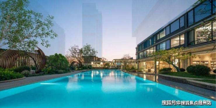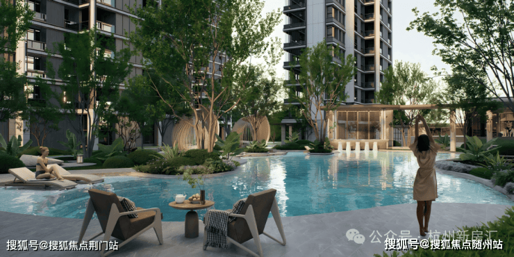 正是绿城首度落地的3.0泳池综合体。这一空间位于社区核心,归家必经之路上,融合中心泳池、林下客厅、卡座与廊架,成为串联生活场景的视觉与功能中心。