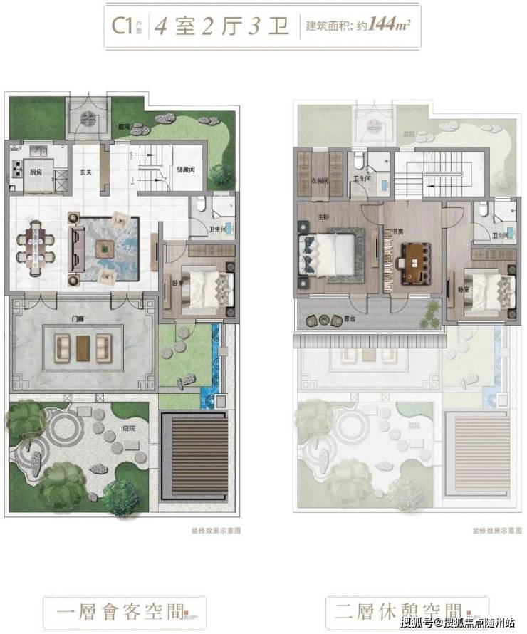 就拿建面约144㎡C1户型为例,地上两层中式建筑,无论从尺度、舒适度,都完美契合一家所需。四房设计,即使三代同堂,一大家子也可以住的舒舒服服,若是呼朋唤友来度假,宾主尽欢不在话下。