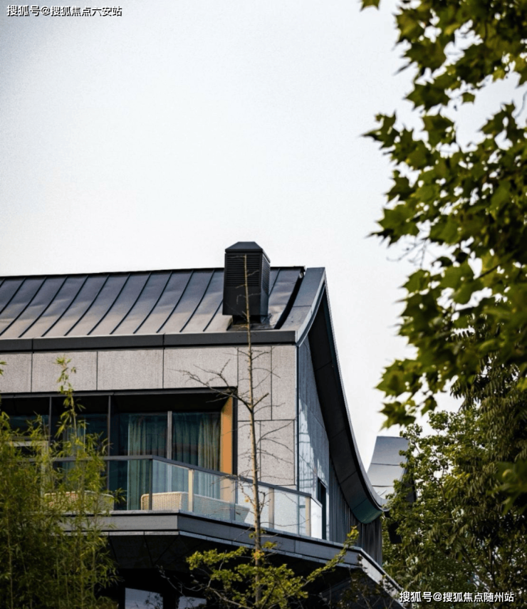 新中式建筑风骨:建筑立面融合传统中式坡屋顶、格栅与现代简洁线条。