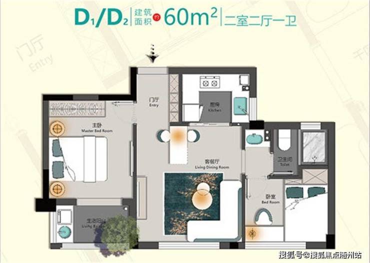 1. 60㎡两房一厅一卫:小户稀缺,刚需首置优选