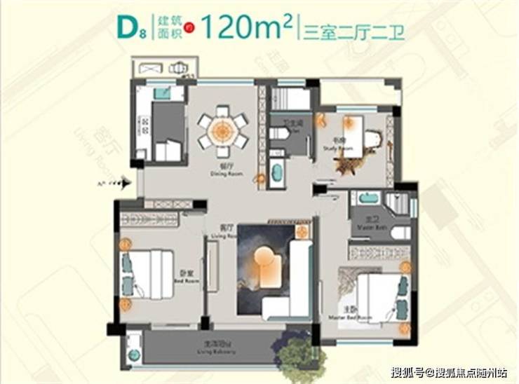 4. 120㎡三房两卫:方正通透,空间零浪费