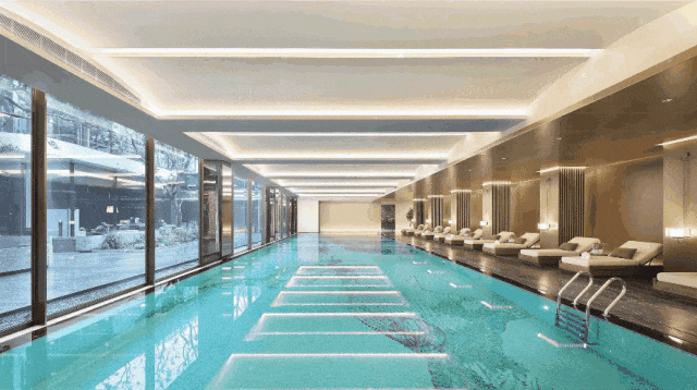 绿意盎然中的一方失重泳池,宛如仙境,无论是自我放空还是社交会友,都是绝佳选择。在这份华贵的宁静里,光影塑造出生活的秩序,与城市交融,注入历史厚重。