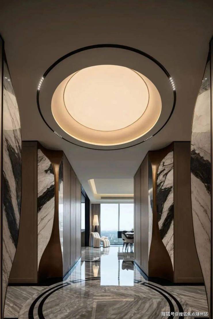约300㎡“观湖”,谢柯打造;另一款是更宽舒的约412㎡“行云”,出自邱德光。尤其是约412㎡“行云”,无论玄关处雪花白、劳伦黑金、金世纪的大胆拼花,瓦楞式的波