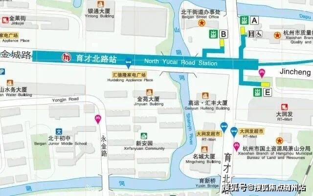 金海塘幼儿园(约50米)、金帆实验学校(约80米)、银河实验小学与在建银河初中(双双约230米)、文博小学(约480米)、北干初中(约600米)……