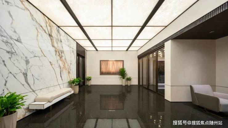 保利瑧誉的单元入户空间也显得尤其敞亮。一般住宅的首层单元大堂也就一层,而瑧誉牺牲了部分货值,约50%的楼栋直接占用了两层的空间,打造双层挑高入户大堂,带来更大气的空间感受和更好的室内采光;电梯内亦使用BV风编织皮革饰面装饰,将归家仪式感贯彻到家门口。