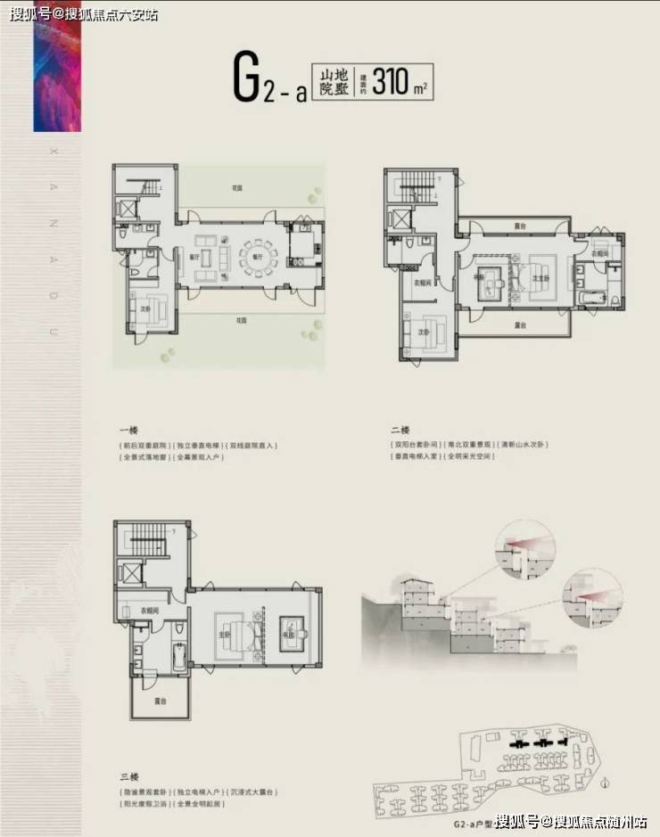 这里的每一座合院,皆采用独门独户的设计,真正实现了“有天有地、有院有湖”的居住理想。户户不仅拥私家庭院和360°环景露台,更通过“坡地筑院、层层退台”的建筑手法,将三重山水意境纳入日常:院内可造小山水,推门即入江南园林,远眺则是40万方仙女湖的浩渺烟波。