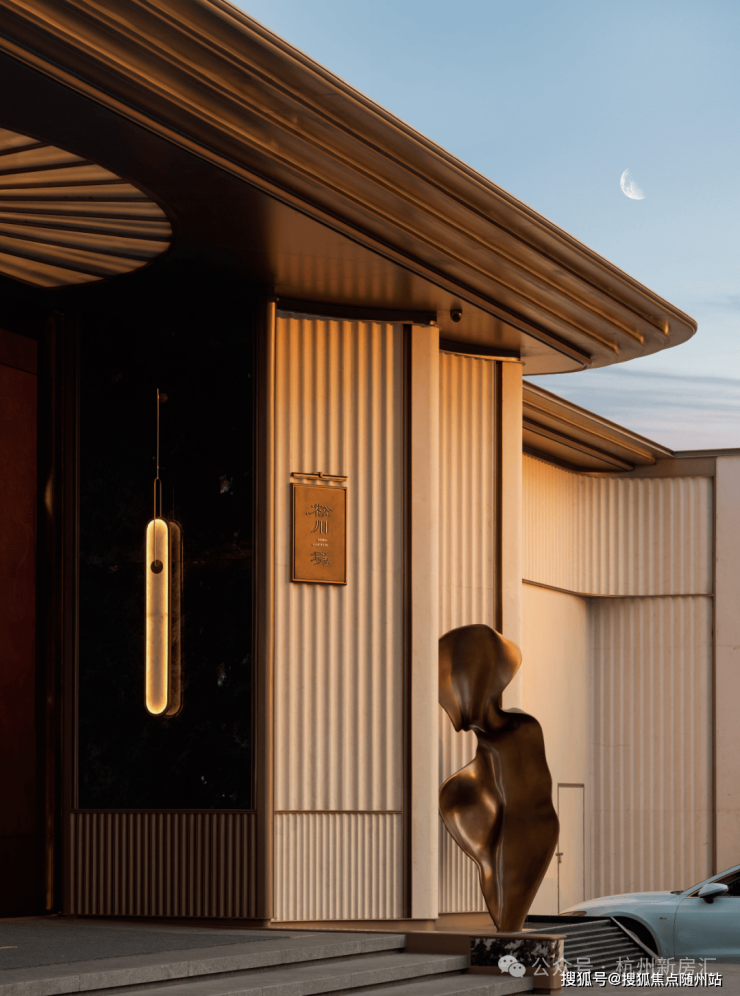 在公共区域的设计上,滨江松川境完全跳出了同价位段的产品思维,配置直接向2000万级顶豪看齐:项目主入口打造了约80米宽、6.5米高的恢弘门头,采用熔铜材质搭配沉香米黄、蓝翡翠潘多拉等名贵石材,每平米石材成本近万元,入口处还设置了25米长的叠级水景,归家仪式感拉满。建筑立面采用超70%全面屏玻璃搭配珠光青铜铝板与弧形造型,与奥映鸣翠等顶豪项目同级别,颜值在整个奥体板块断层领先。