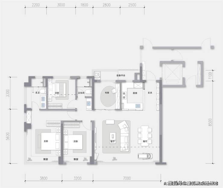 餐客一体宽境:约7米阔绰开间,奢宅排场