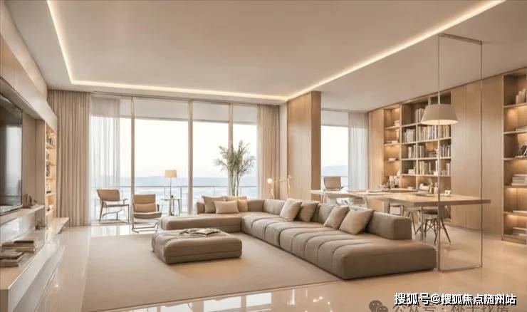 不仅离钱塘江更近(直线约500米),也是目前钱塘江畔,3万+价位段唯一可售新盘。外立面采用三面大面铝板,以香槟金为基调,辅以金色线条勾勒,南面大面积玻璃镶嵌,「中央空调、地暖、新风」三大件全部配齐,大规格岩板背景墙……豪宅感也拉满。
