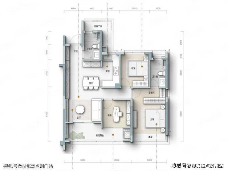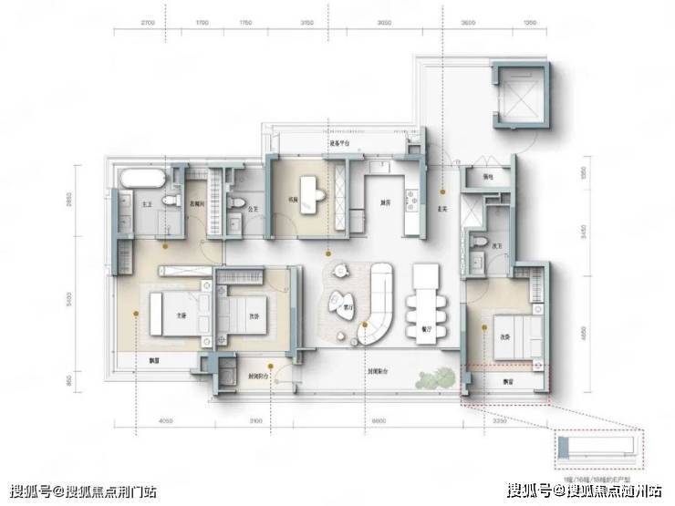 四开间朝南设计,主卧套房设计,宽景封闭式阳台。