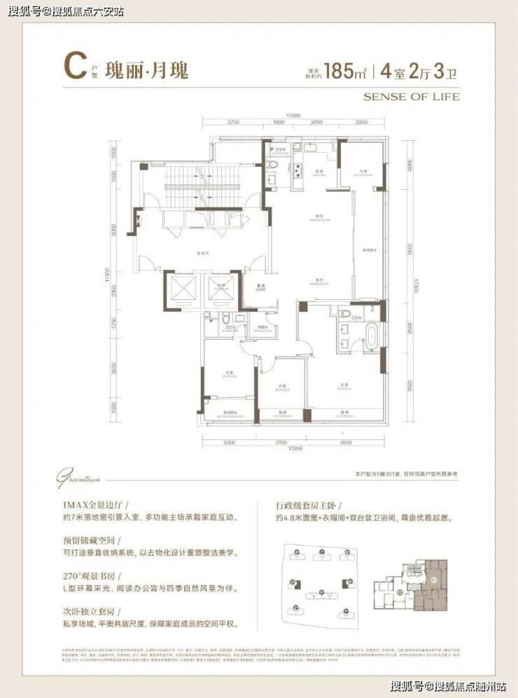 建面约185方户型,高品质的寰景奢宅: