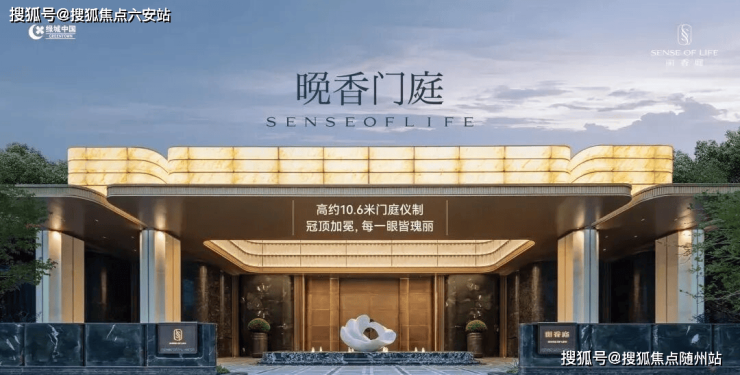 丽香庭的实景示范区,借鉴瑰丽风格,门头宽约60米、高约10米,以「翡翠帷幔」为概念。顶部三段式发光云石吊顶,与下部四根芬迪白奢石立柱相互对应,呈现端庄稳定的古典美学气质。