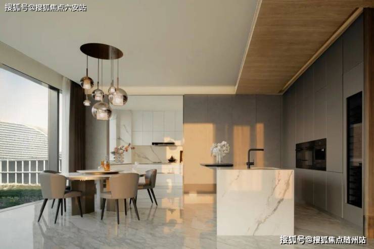室内由 CCD(郑中设计事务所)打造,凸显了现代奢华和品味的精髓,从高档材料的运用到开放式的空间布局,270度“无柱转角落地客厅”站在Amber 98的样板间,奥体地标杭州之门近在咫尺,仿佛每一个建筑细节都触手可及。全屋通高的柜体,头顶的无边框灯具,将本就优越的层高直接拔高到了“奢享”的概念。