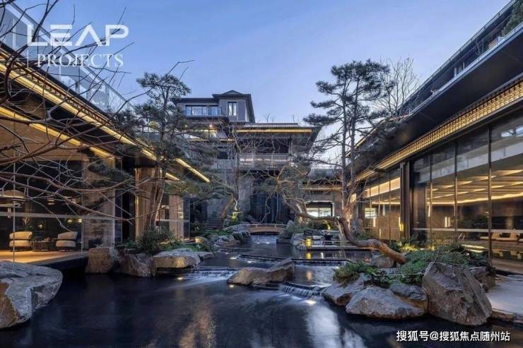 漫步于光影交织的幽静庭院,您将踏入一方充满诗意的天地。潺潺流水映照着婆娑树影,挺拔树姿为这片空间注入向上的生机,纵向延伸出无限的视觉张力。这座下沉庭院,不仅拉近了建筑与自然的情感共鸣,更使室内与景观紧密相连、和谐相融。每一扇窗户,都犹如框中的一幅生动山水画。