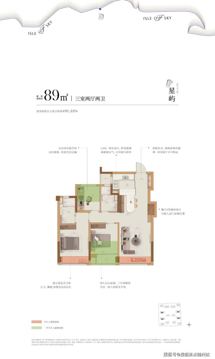 这一惊人得房率的实现,得益于极致的产品设计创新。项目充分利用2024年底杭州出台的“封闭阳台按一半面积计算”等新规,通过最大化飘窗设计、可拓展阳台等手法,将89-132平方米户型的实用价值最大化。