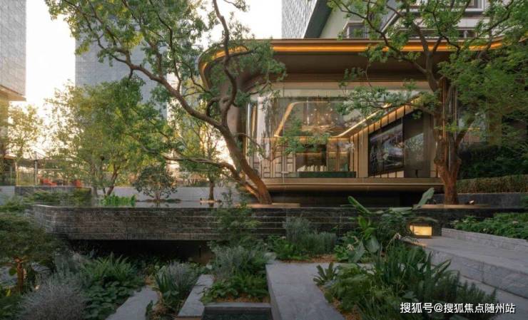 绿城·知海棠充分利用抬地。一方面做出立体森林景观,叠山理水,水波款款,枝繁叶茂间,浮岛游弋;另一方面,各类动线相互穿插,拾级而上,如同丝带般延展,“未来版西湖十景”渐次展开,无界泳池、下沉庭院、星光水院、疗愈花园等生活场域,人随景动。