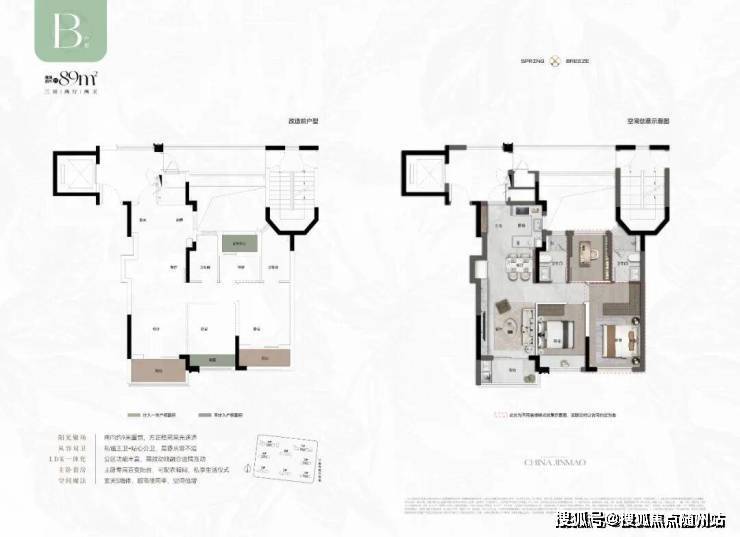户型设计:整体布局紧凑,功能分区明确,入户有玄关,厨房紧邻餐厅,客厅与阳台相连。部分户型可改造性强,如 89㎡户型客厅南次卧无结构梁,可做大横厅。售楼热线:☎ 400 832 8823「售楼处」☎〢🔻已认证〢◆🔻