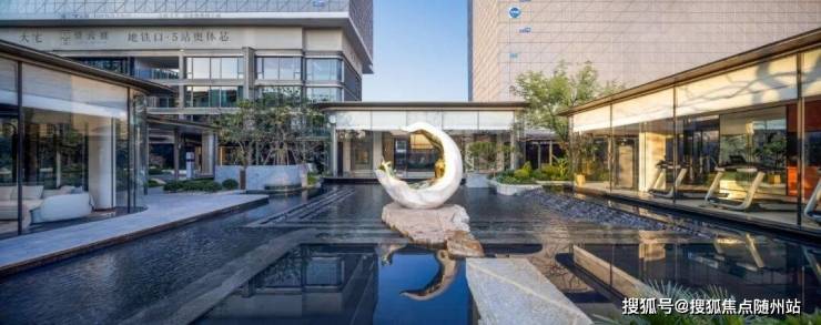 二境赏核心下沉水庭院——约1800㎡摩卡生活剧场。踏入其间,临水而设有风雨连廊、漂浮健身房、观景吧台、休闲书吧等多重功能空间。