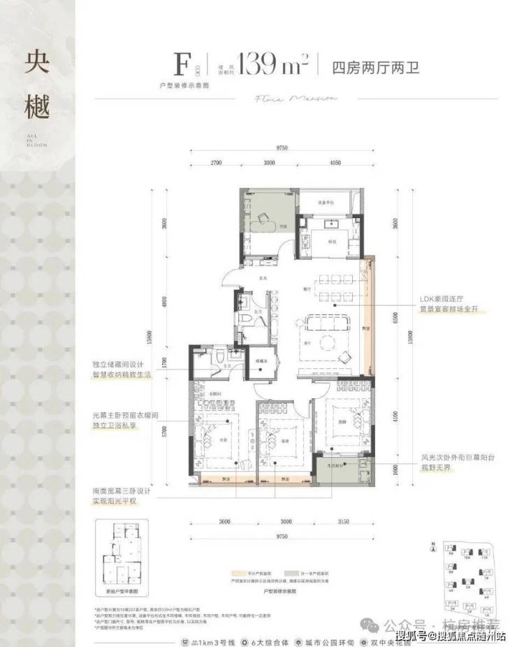 建面约139㎡的四房两厅两卫一储户型,则以它的南向三卧室:双飘窗+封闭阳台设计脱颖而出。整体南北通透设计,加上主卧衣帽间的贴心设置,为家庭生活提供了更多的空间选择和功能性需求。且设计了独立储藏室空间,满足家庭收纳。