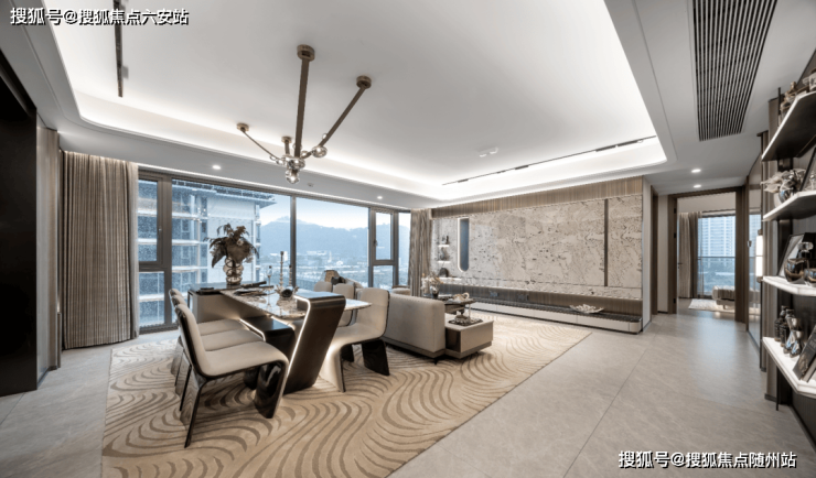 特别值得一提的是,入户门手柄选用Prada绿奢石材质,这一细微之处的坚持,正是其“奢而有度,简而不凡”理念的极致体现。“星幕为顶,光厅作序”,项目将光与影的艺术融入空间设计,让穿梭其中的过程,不再是简单的通行,而升华为对日常生活的一种极致礼遇与致敬。