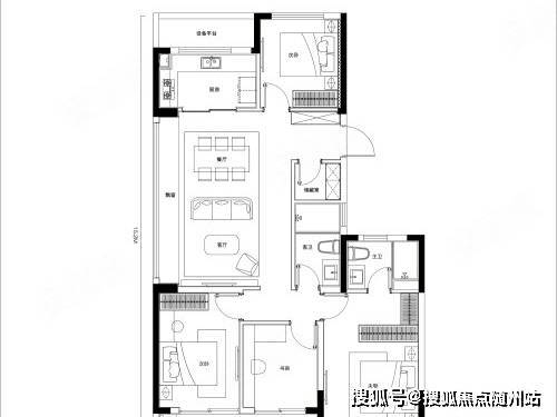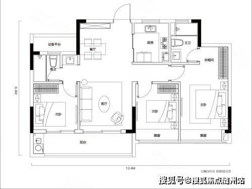 105㎡(三房两卫):边套 270° 三面采光、6 米大飘窗、主卧套房