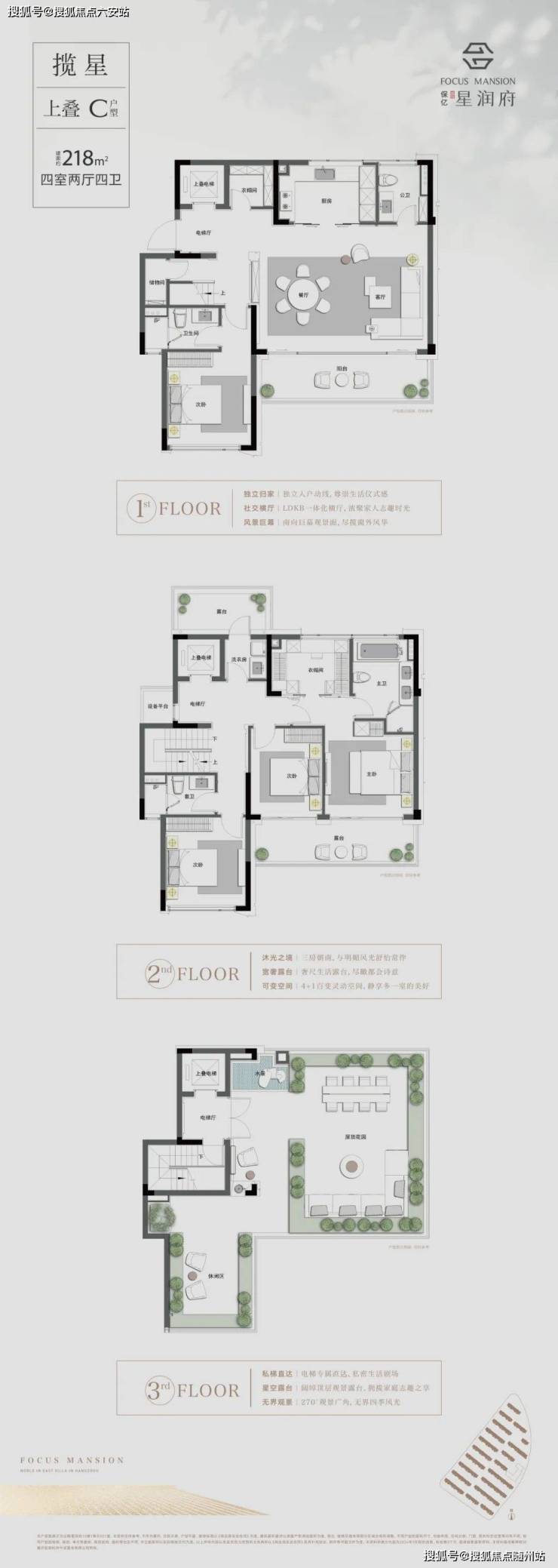 上叠带星空大露台,中叠带入户花园+地下室+超大露台,下叠带花园+地下室,独门独院、私梯入户、类独栋式Villa,少见+创新+迭代+超越是它的DNA,保亿靠星润府,在杭州足以封神了。
