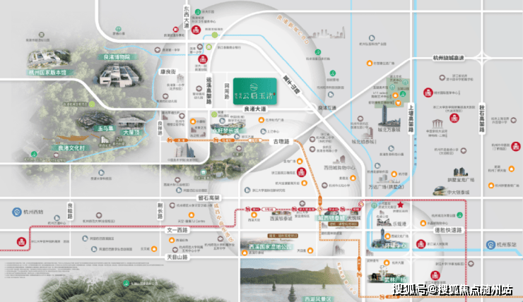 项目毗邻莫干山路城市动脉,这条百年道路由南向北串联西湖、京杭大运河、良渚古城遗址三大世界遗产,形成杭州公认的“豪宅走廊”。沿线的武林壹号、江南里等顶豪项目奠定了其价值基底,云启玉渚作为良渚新城段稀缺纯低密住区,承接主城改善外溢,成为莫干山路豪宅带上的收官级作品。