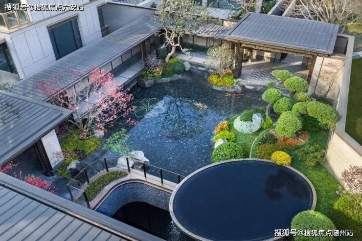 写仿西湖十景,取意郭庄形制,引湖入园、循序渐进,复现九溪烟树况味;景观中轴、风雨连廊、花园景致等将建筑与园林相融一起,依循自然缓坡地势,营造意韵悠扬的禅境园林,呈现小中见大、园中有园、景中有景、曲径通幽之境,将西湖的精致山水写仿入园,于方寸之间纳藏万千气象。