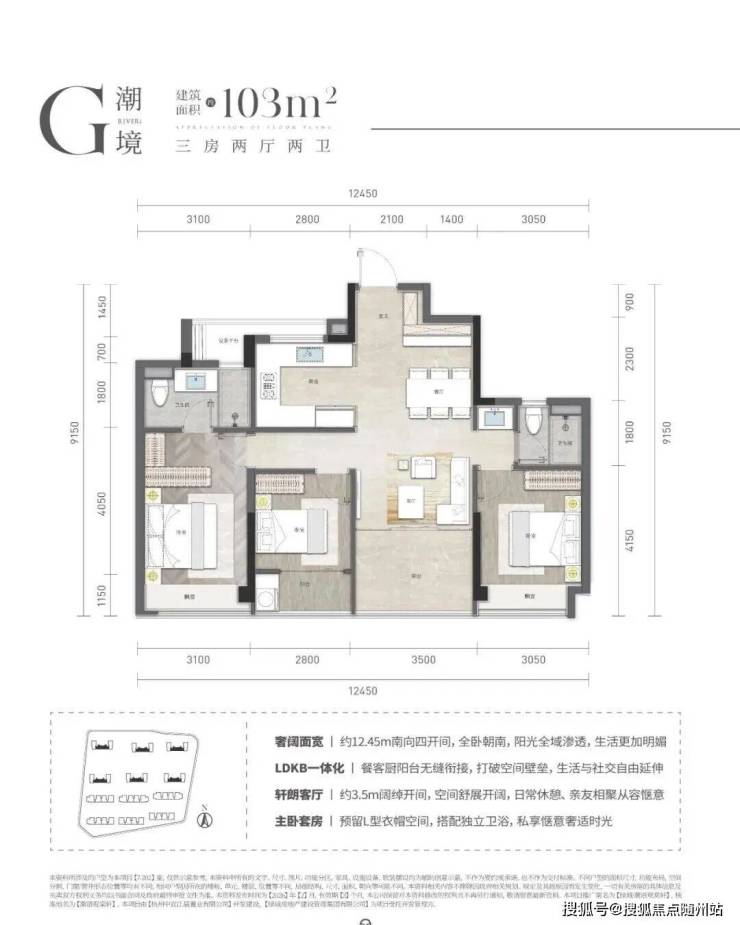 建面约103㎡的三房户型,四开间朝南,且南向面宽竟做到了约12.45米,阳光得以在全屋渗透。主卧预留的L型衣帽空间,让女主人一眼动心。🔝☎官方售楼处电话: 400 816 3856 ✅✅「已认证」💎 ☎置业顾问经理专线 :156 5806 2381「微信同号」💎
