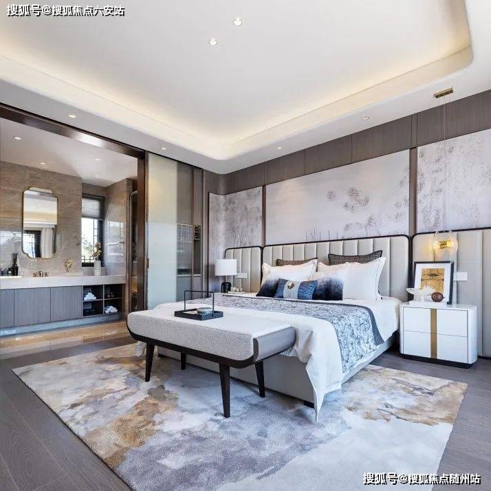 地下5.8米挑空层可改造茶室、收藏馆,星空露台搭载智能穹顶,实现“向下生长五重境,向上触摸银河系”的空间革命。144㎡合院设计南向面宽9.9米,6.6米横厅直通庭院,二楼双套房+星空露台;370㎡楼王则采用9房6卫格局,独立家政动线,适合三代同堂家族聚居。