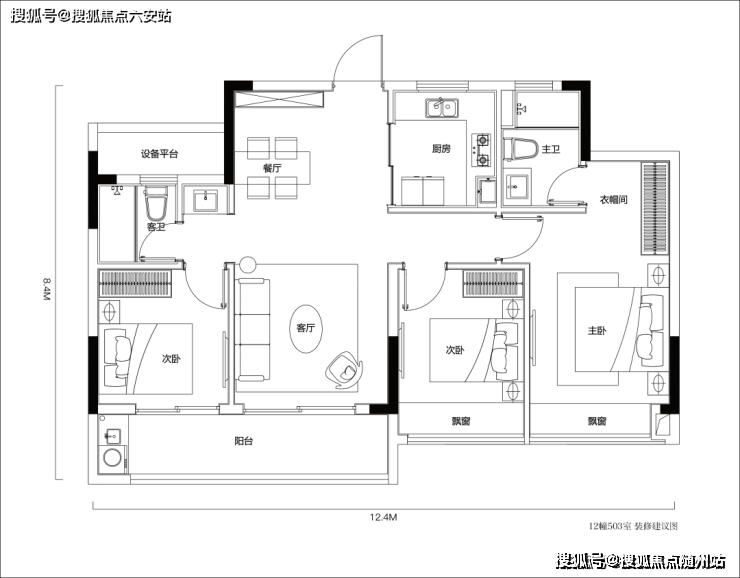 约100㎡户型点评:三房两厅两卫,南向四开间阳光户型,完整功能大三房 双飘窗,南向双开间 大阳台套房式主卧 全明双卫;