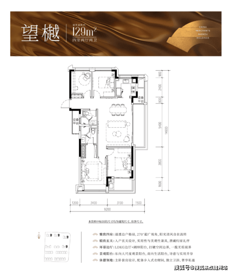 168㎡:四房两厅三卫,双阳台设计,约15米南向面宽,IMAX级采光,配置独立衣帽间、书房