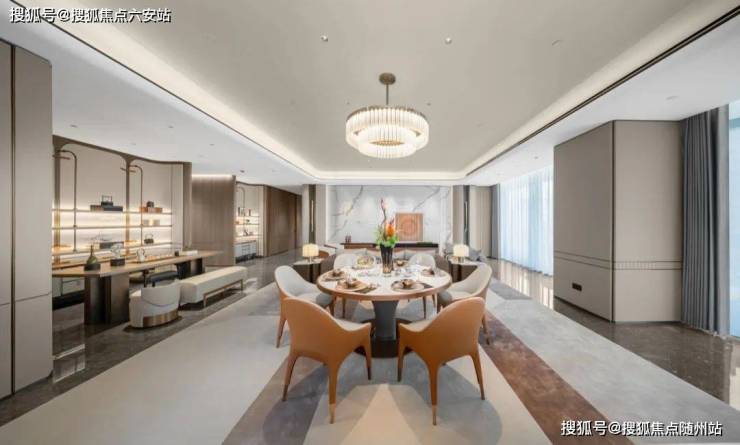 它围绕中心一个奢阔的静谧花园,以城市森屿度假风为灵感进行打造,层层递进又充满秩序感,尺度和格局上,都大开大阖,充分的实现了户户瞰景,移步换景。