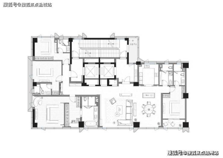 ◎LDKB一体化:约80m'南向横厅(面宽12米),以“社交核心”串联中西厨与家庭互动,实现宴会级场景自的。
