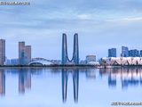 示范区建筑体采用的是米白色的莱姆石镶嵌超大玻璃,莱姆石在阳光的照耀下仔细一看有母贝的光泽效果。把光影作为设计语言引入,让建筑显得纯净,却又不失现代感。