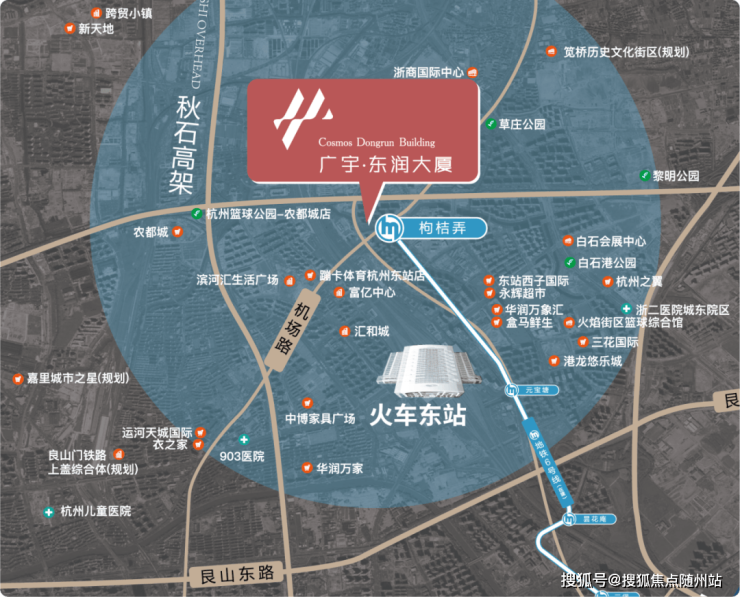 沿着杭州地铁1号线到火车东站枢纽,顺转6号线仅需一站路,即可来到广宇·东润大厦,两栋具有现代风的LOFT建筑,就是「创客公寓」,地铁口枸桔弄站就在楼下,已经开门营业的麦当劳则也许捕捉到了未来可能会有一大波青年人在此相聚,提前布局于此。