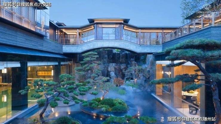 设计采用“外借”和“内造”的双重手法。外借直河公园景观,通过业主专属出入口将公园与园区一体化设计;内造则通过名贵石材、全冠名木、艺术雕塑等收藏级元素,呈现庐系前所未有的艺术价值与自然张力。园区内以“引水之钥”的设计手法形成聚财之眼,融入流泉漱石、波漾涟漪等水元素,复刻“清泉石上流”的人文诗境。