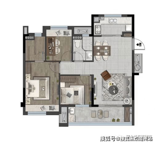 【高层C户型】3房2厅1卫1储 建面约88㎡