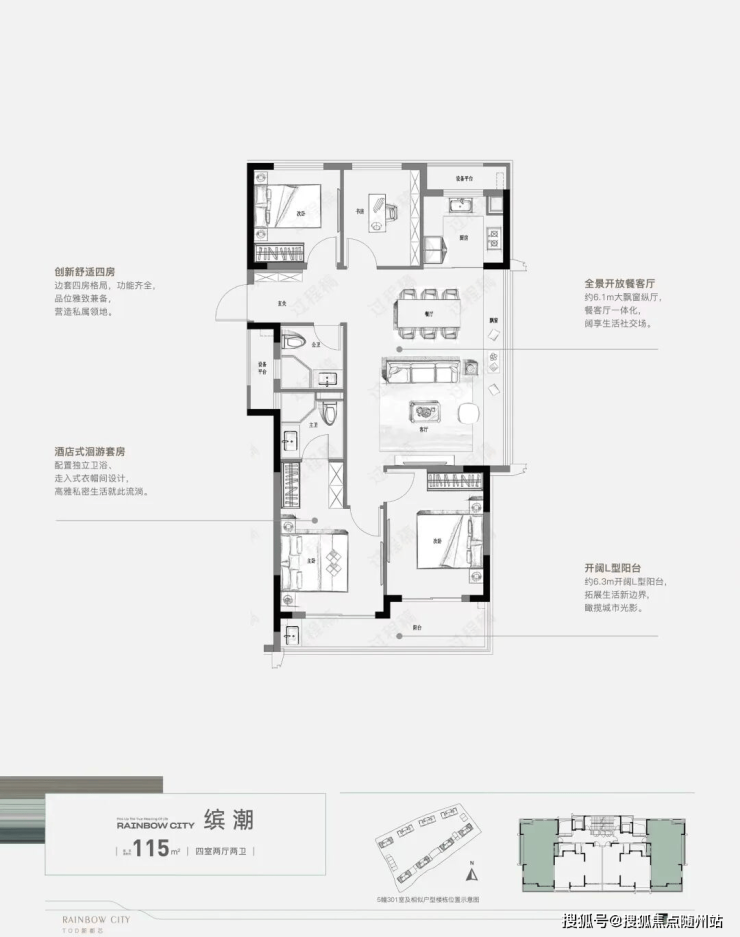 约115㎡/130㎡户型:多为边套设计,视野开阔,部分户型拥有南北双阳台,改善属性更强 。