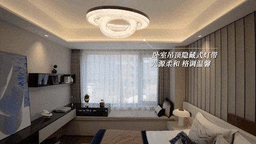 ◈吊顶隐藏灯带:主卧吊顶工艺,安装隐藏灯带用于辅助照明,光源柔和、格调温馨。