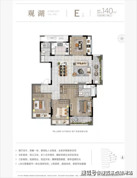 约84%得房率、一体两户、餐客厅一体化等设计,项目以高规格起笔品质洋房生活。