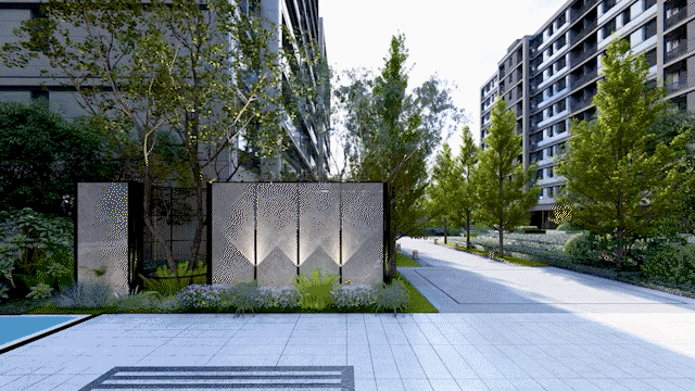 九大景观节点:阳光草坪、曲水花园、云溪客亭等,打造全龄活动场;