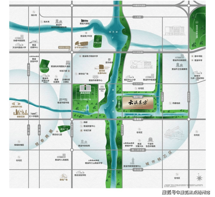 ◆慈溪市政府旁,唯一四面环水生态岛屿地块