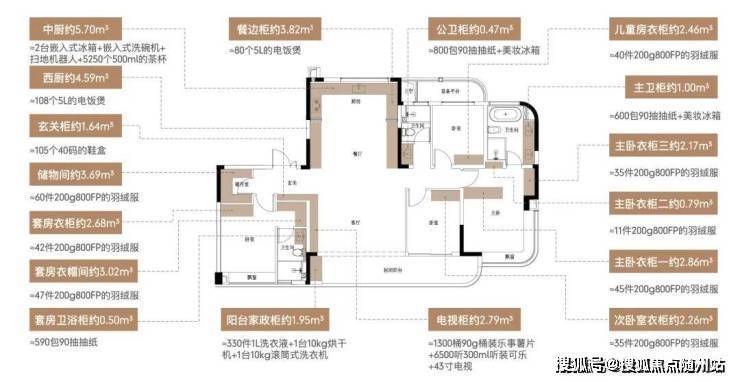 「超强收纳」全屋总收纳约43m³,一梯一户,预设收纳内外双玄关